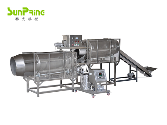 隨著我國國民經濟的迅速發展, 人們對(duì)休閑保健越來越(yuè)關注(zhù),膨化食品(pǐn)日益被人們認識,我公司在研究了發達國家的生(shēng)活習慣和國人早餐發展方向後,開發了這一產品.其各項技(jì)術均達到(dào)歐洲同類水平.該設備從原料配置到出產(chǎn)品一次完成,自動化程度很高.